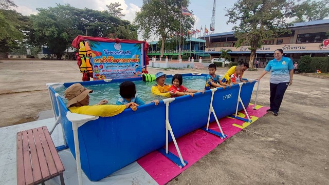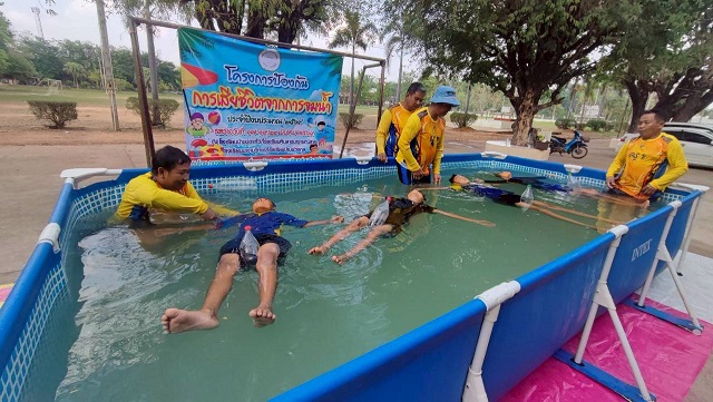 | รายละเอียดของกิจกรรม | นายอภิสิทธิ์ ผิวหอม นายกองค์การบริหารส่วนตำบลบ่อแก้ว พร้อมคณะผู้บริหาร หัวหน้าส่วนราชการ และผู้นำชุมชน ร่วมพิธีเปิดการดำเนินโครงการป้องกันการเสียชีวิตจากการจมน้ำ ประจำปีงบประมาณ 2569 ระหว่างวันที่ 17-19,23 มีนาคม 2569 ณ โรงเรียนบ้านบ่อแก้ว โรงเรียนหินลาดนารายณ์สาร โรงเรียนนางามวิทยา โรงเรียนบ้านม่วงกุล มีนักเรียนเข้าร่วมโครงการ จำนวน 291 คน ซึ่งมีวัตถุประสงค์ 1. เพื่อให้เด็กในกลุ่มเสี่ยงสามารถลอยตัวหรือว่ายน้ำเพื่อเอาชีวิตรอดได้จากการประสบเหตุทางน้ำ 2. เพื่อลดอัตราการเสียชีวิตจากการจมน้ำในเด็ก 3. เพื่อให้เด็กมีความเข้าใจวิธีการป้องกันการจมน้ำ ตลอดจนรู้จักและสามารถช่วยชีวิตผู้ประสบเหตุทางน้ำได้อย่างถูกต้องตามวิธีมาตรฐานสากล |